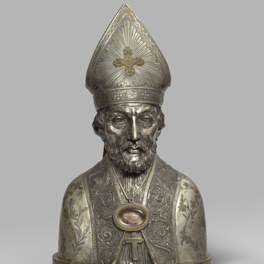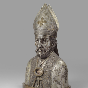Buste-reliquaire de saint Leu en cuivre argenté, XIXe siècle. © Hervé Lewandowski. Centre des monuments nationaux