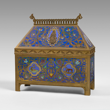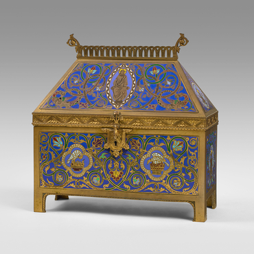 Châsse du milieu du XIXe siècle en bronze doré et émaux champlevés. © Hervé Lewandowski. Centre des monuments nationaux