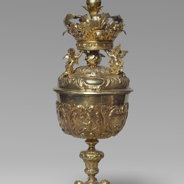 Ciboire d'exposition en argent doré connu sous le nom de ciboire de Norfolk, 1701-1702. © Hervé Lewandowski. Centre des monuments nationaux